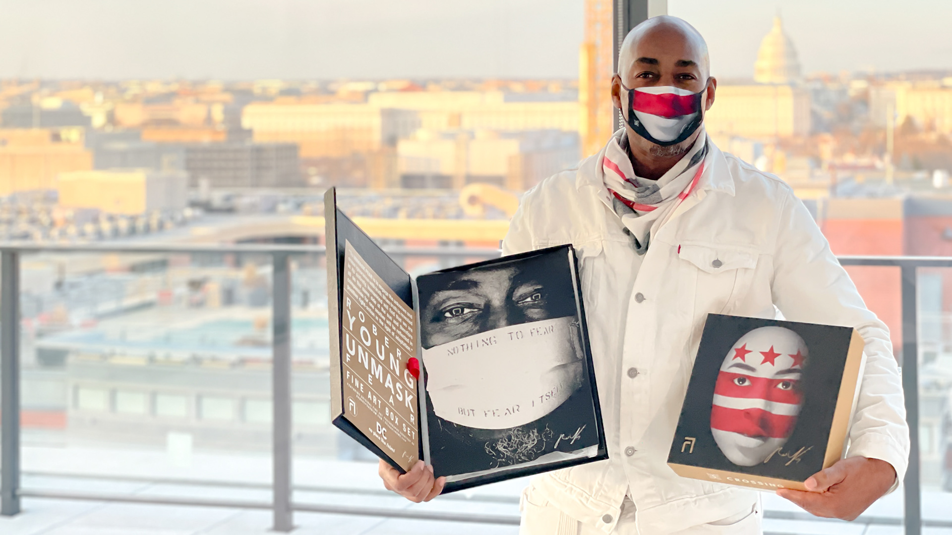 Robert Young quickly and quietly endeavored to deliver “Hope In A Time Of Pandemic And Inequality” through the launch of a timely Public Art Campaign UNMASK FEAR. The campaign, born of a masked self-portrait entitled “No Fear,” has since gone on to be witnessed by hundreds of thousands of people across the Nation’s Capital, Washington D.C.