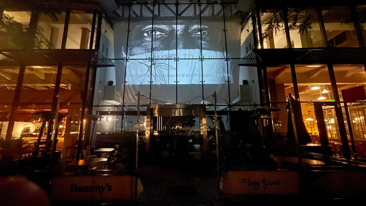 Robert Young returns to Navy Yard to present a commemorative projected Public Art Activation at one of Yards Park/Capitol Riverfront’s most popular restaurants Bammy’s . The activation featuring images from Young’s Unmask Fear Campaign are being presented in support of his upcoming NFT launch and in celebration of Bammy’s one year anniversary and their incredible fortitude to continue to serve the community with their hospitality throughout the pandemic.