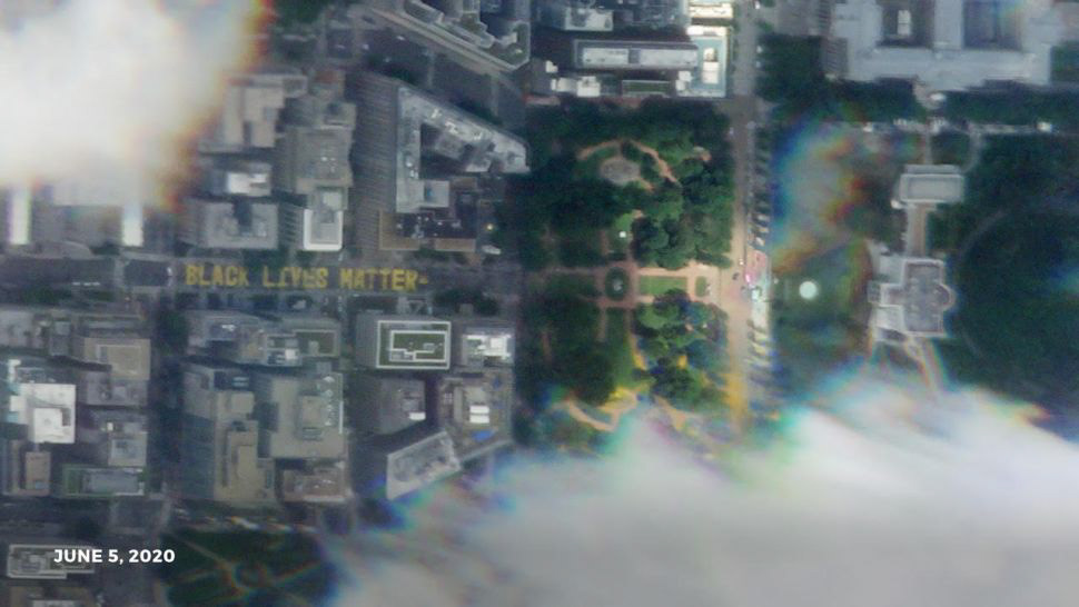 After hearing the ask Young immediately began to create a mock-up on his phone to help bring a rough visualization to the request. He proceeded to photograph a printed overhead view of 16th street and then added the words BLACK LIVES MATTER, along with the District Of Columbia Flag.